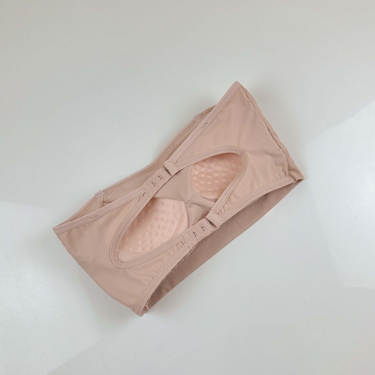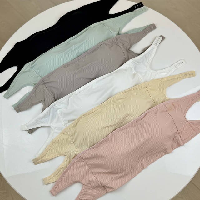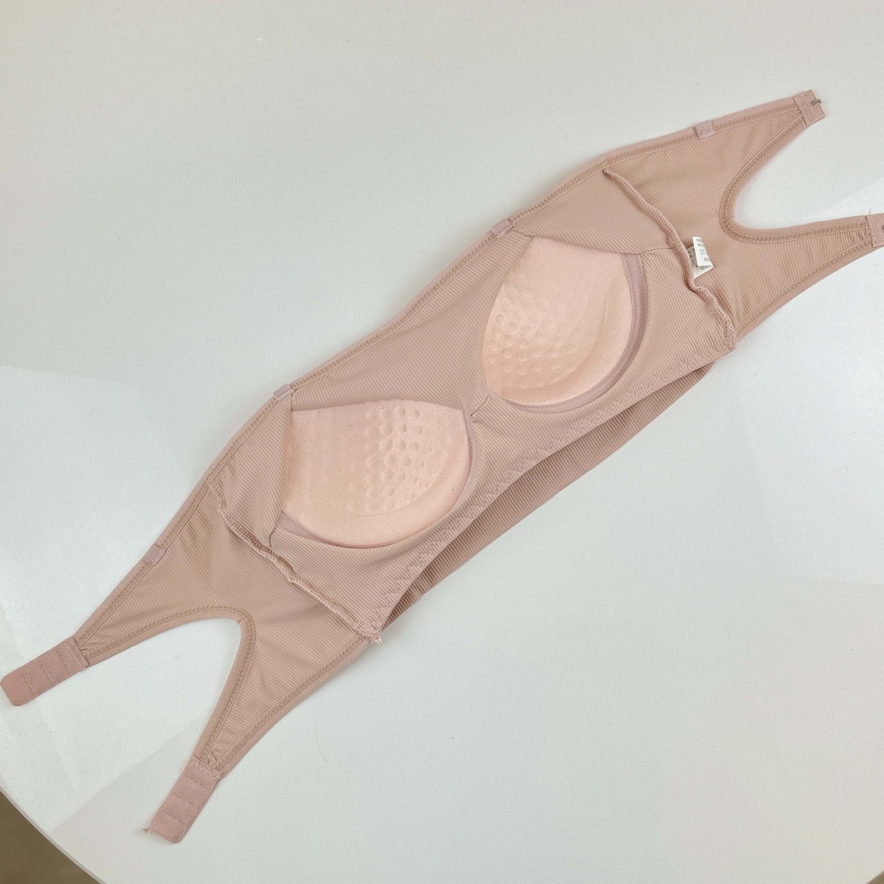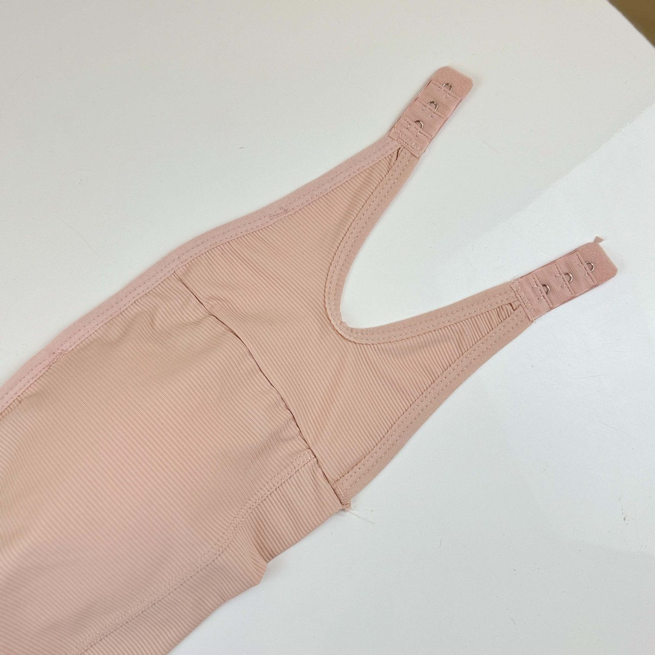 Безшовні топи-бандо у рубчик. Позаду на двох застібках, є кріплення для бретелей. З не знімними вставками