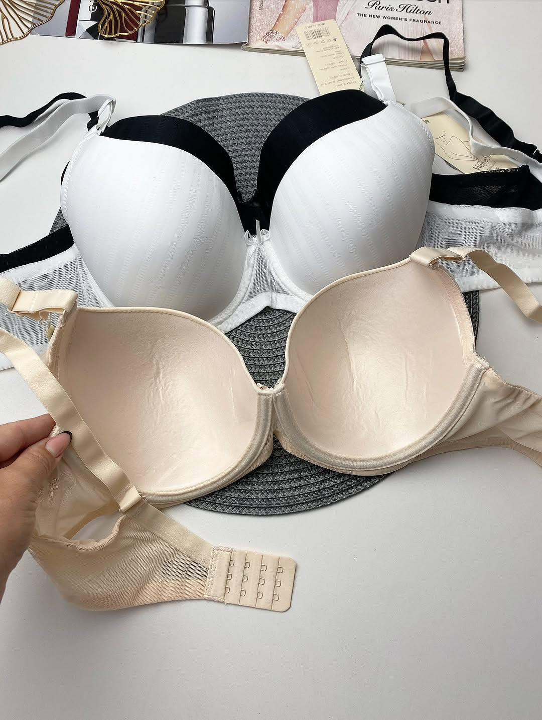 Базовий бюстгальтер на тонкому поролоні, бретелі зйомні, застібка на 3 крючки.