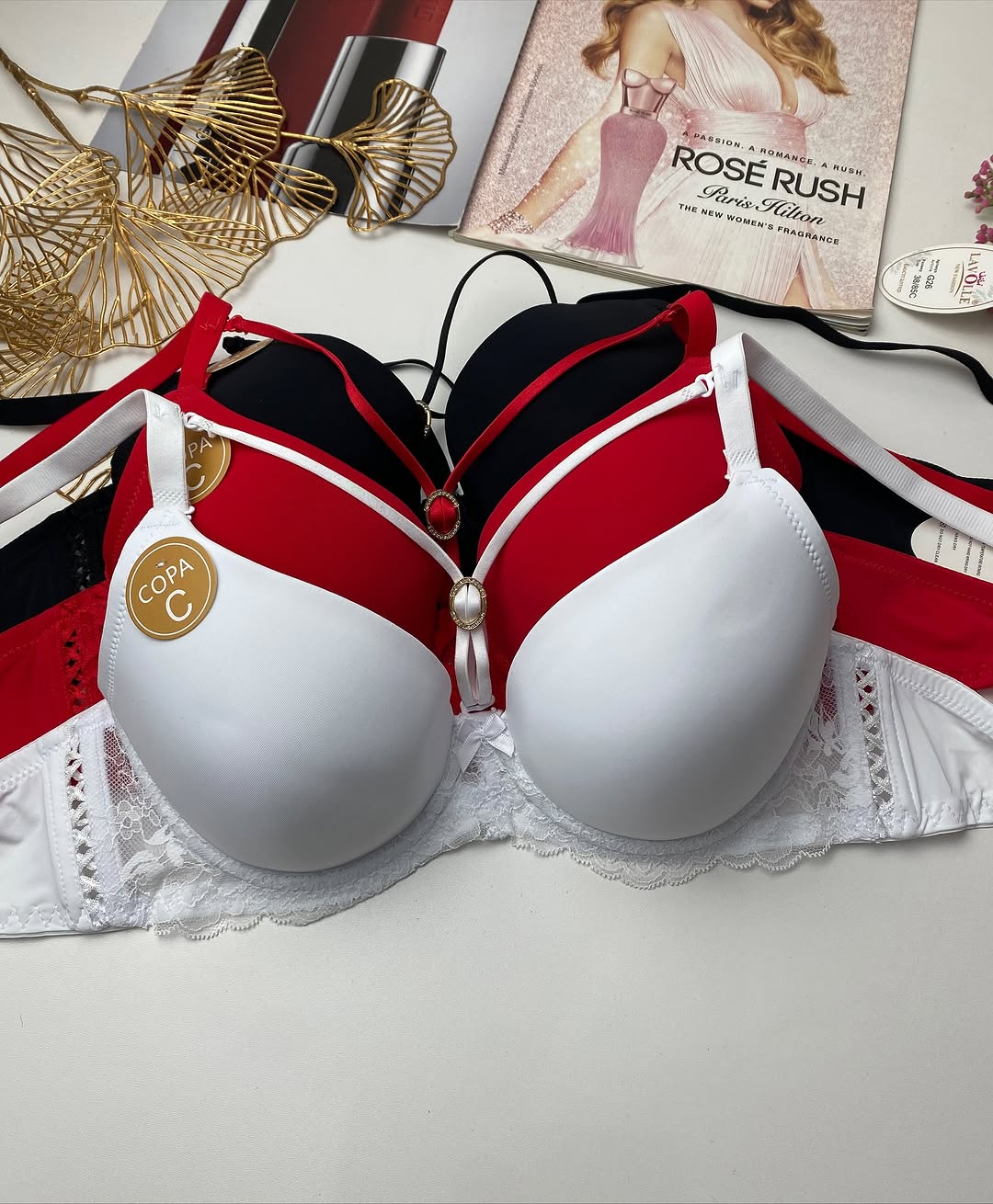 Гладенький бюстгальтер на тонкому поролоні зі зйомними портупеями, застібка на 2 крючки.