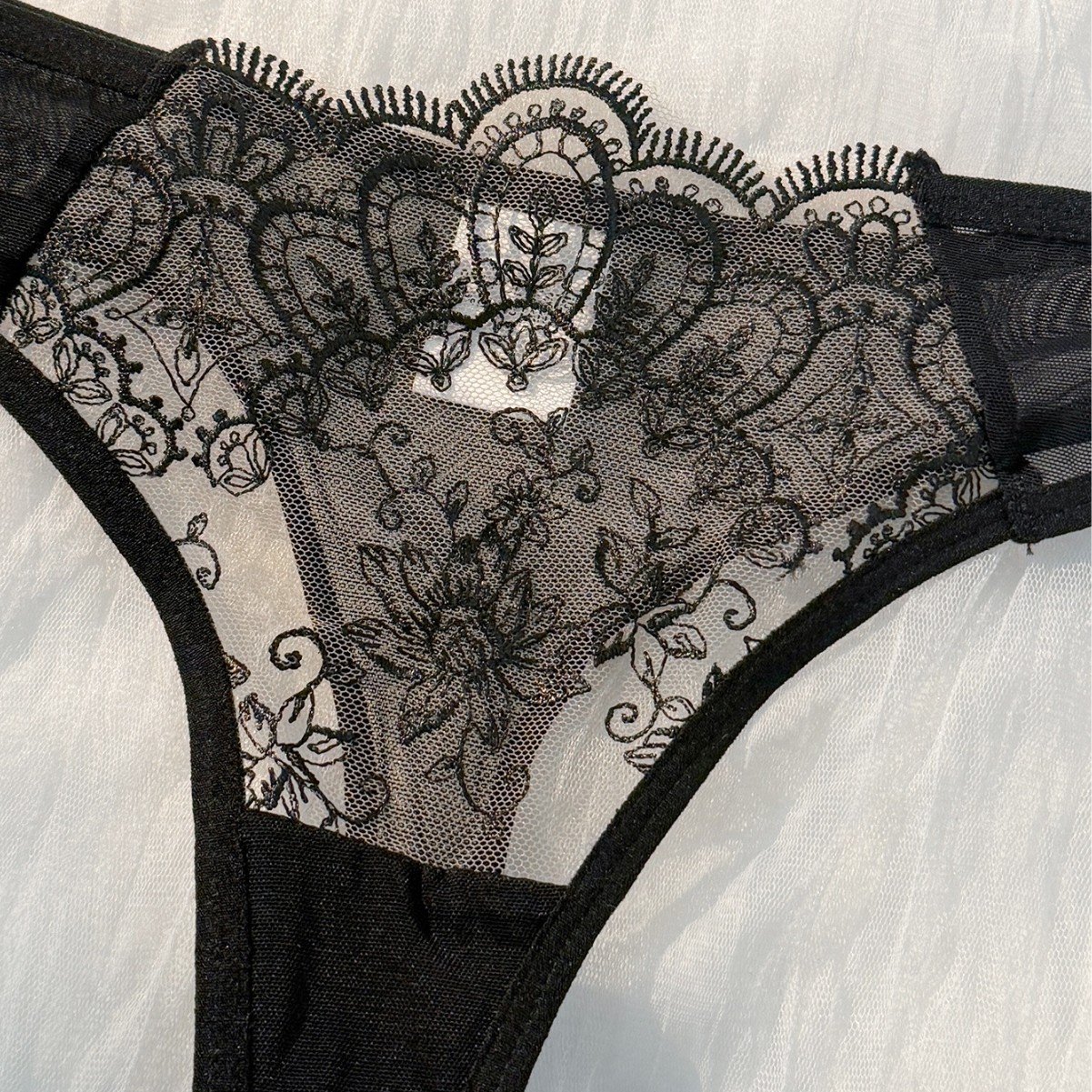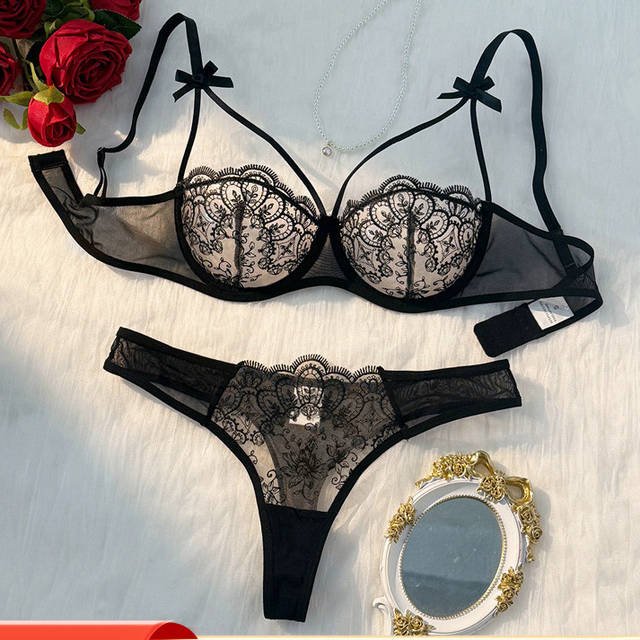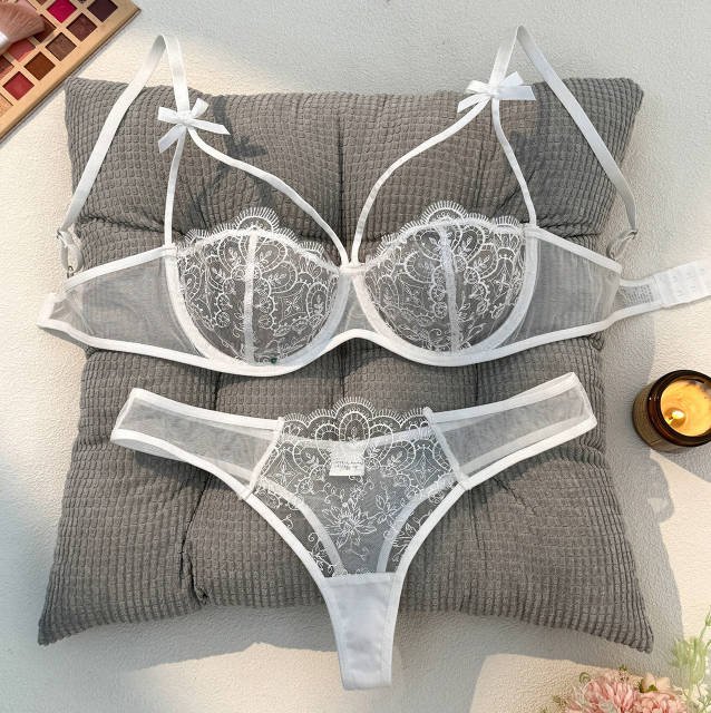 Бюстгальтер на кісточках зі стрепами, із напівпрозорої сітки, з вишивкою на чашках. Спинка з гладкої сіточки з застібкою на два гачки, бретелі не знімаються.