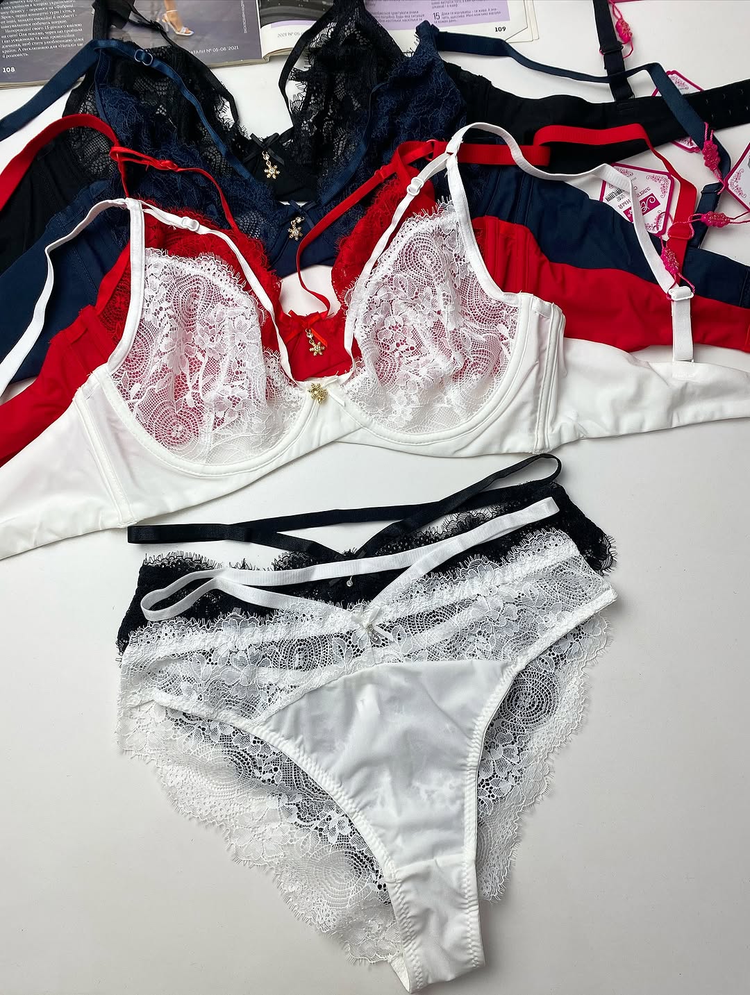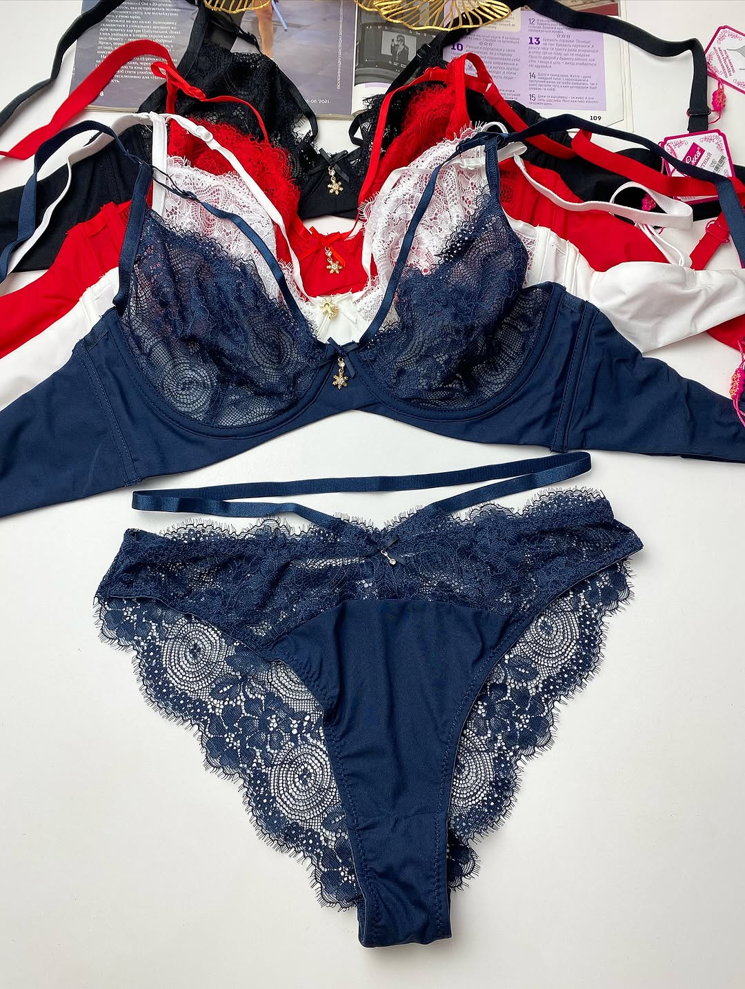 Мереживний напівпрозорий комплект без поролону з портупеями.
