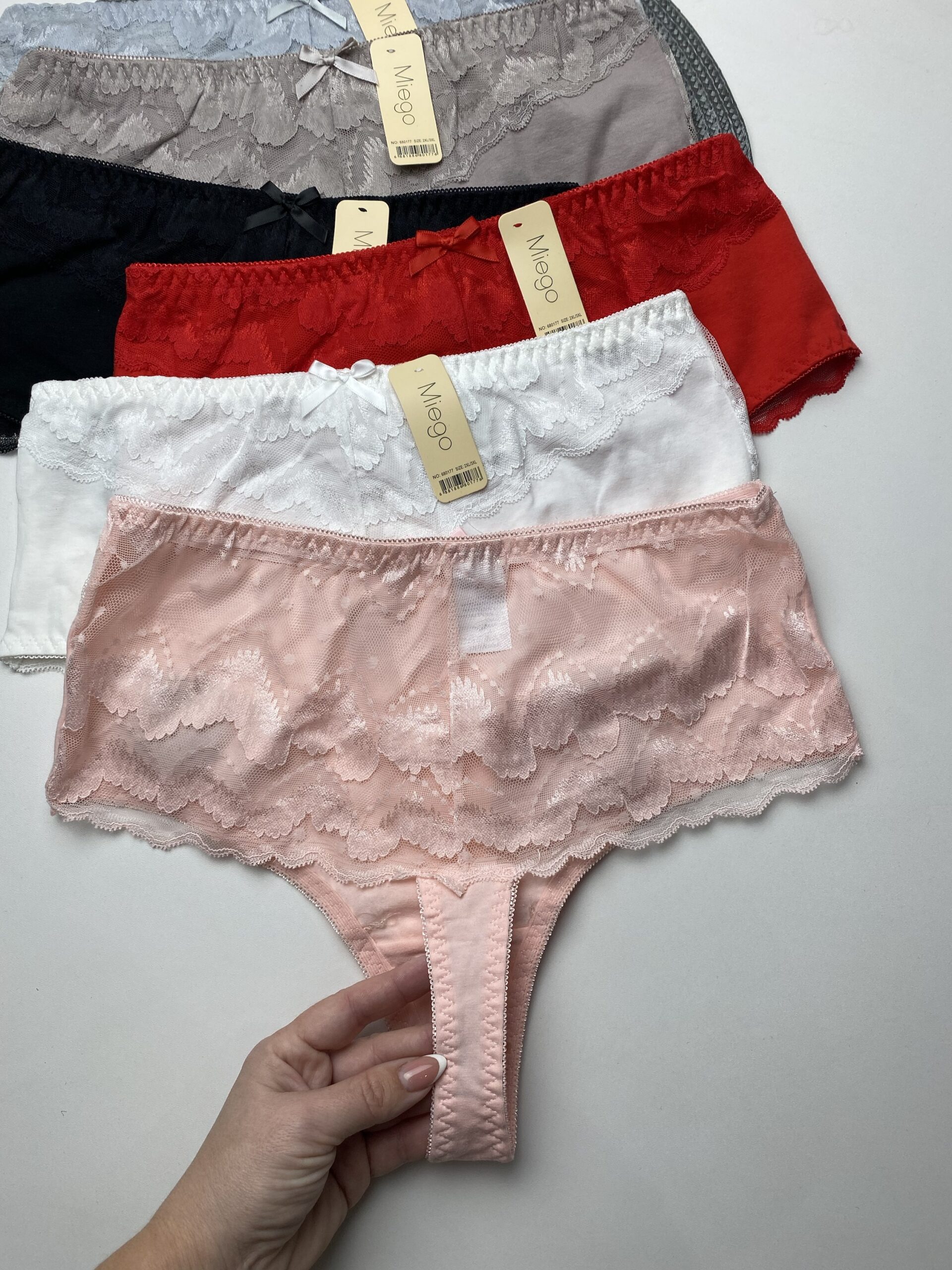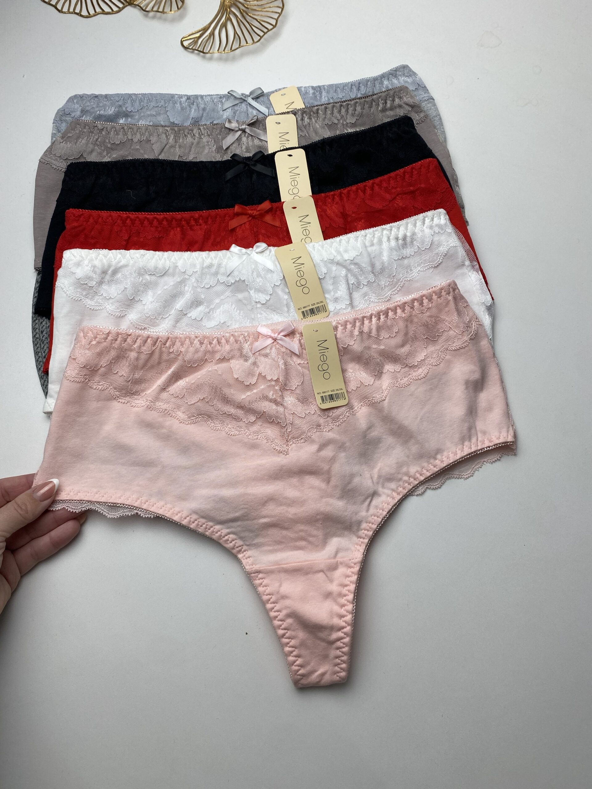 Трусики стрінги з котону та мережива, висока посадка.